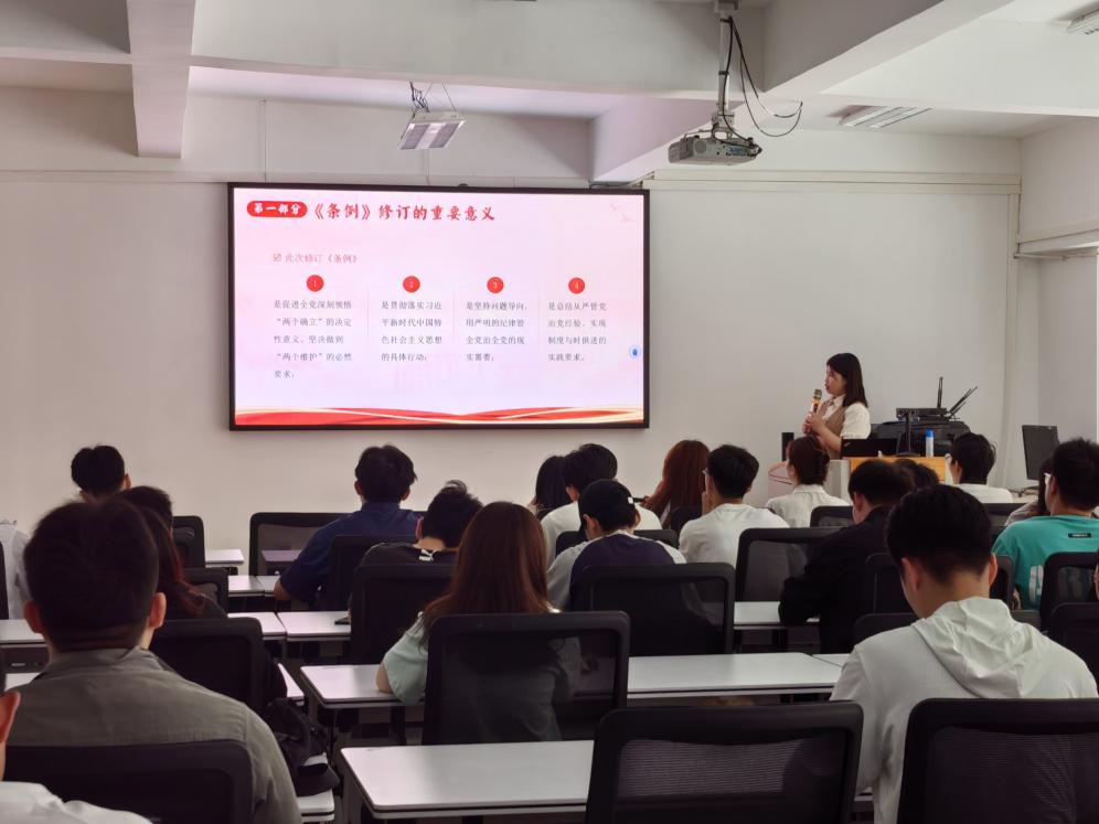 在學(xué)習(xí)分享環(huán)節(jié),同學(xué)們從黨員的身份、職責(zé)的角度,結(jié)合大學(xué)生學(xué)習(xí)生活實(shí)際做學(xué)習(xí)心得分享。大家紛紛表示,在今后的學(xué)習(xí)和生活中,將加強(qiáng)對(duì)《條例》的學(xué)習(xí),在嚴(yán)守紀(jì)律的同時(shí),主動(dòng)亮身份、做表率、爭(zhēng)先鋒、盡職責(zé),爭(zhēng)做優(yōu)秀黨員。