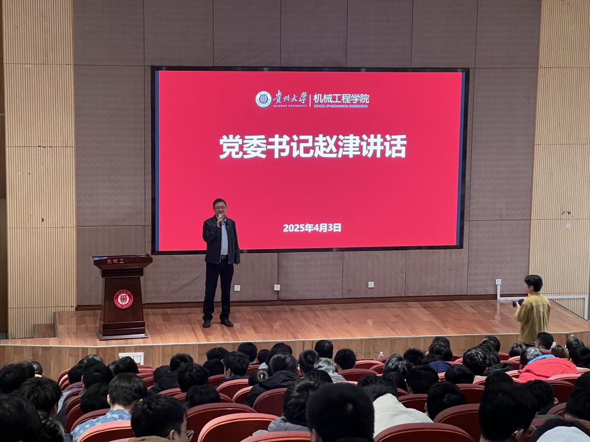 為幫助大三學(xué)生明確未來方向,合理規(guī)劃學(xué)業(yè)與職業(yè)發(fā)展,4月3日,機械工程學(xué)院在圓形報告廳召開了2022級本科生年級大會。此次大會聚焦考研動員、出國留學(xué)、入伍以及就業(yè)政策解讀,為同學(xué)們答疑解惑,指引前行方向。學(xué)院黨委書記趙津、正處級組織員董蔚然、副院長李家春、副院長唐正強出席,外國語學(xué)院樊章俊老師、學(xué)院教務(wù)科陳馨老師以及2022級全體同學(xué)參加。
