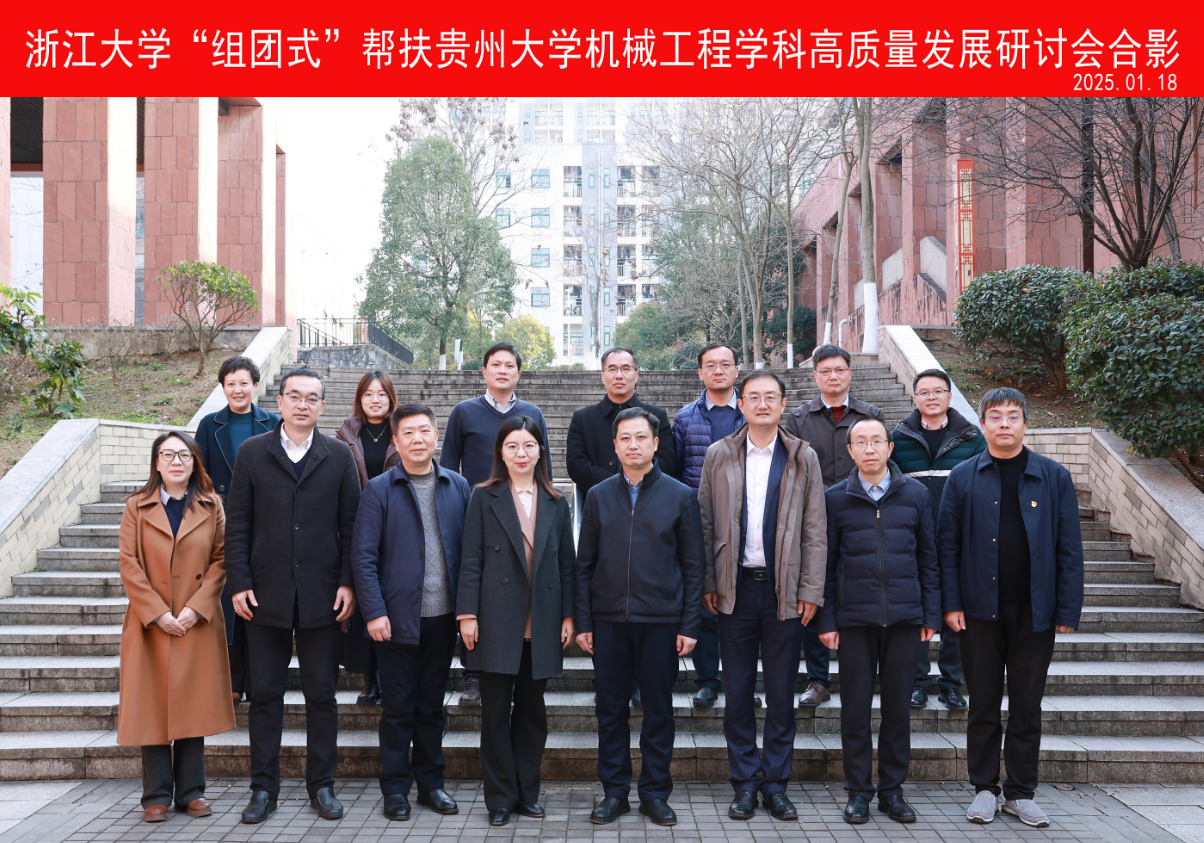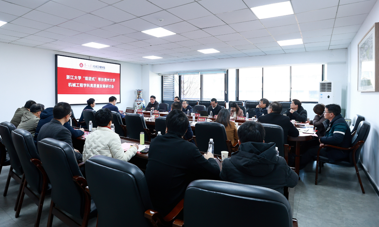 2025年1月18日,浙江大學(xué)機(jī)械工程學(xué)院項(xiàng)淑芳書記、徐兵常務(wù)副院長、劉振宇副院長、王柏村副院長一行到貴州大學(xué)機(jī)械工程學(xué)院開展“組團(tuán)式”幫扶貴州大學(xué)機(jī)械工程學(xué)科高質(zhì)量發(fā)展交流研討,會(huì)議旨在加強(qiáng)“省校合作、校校合作”,創(chuàng)新探索“組團(tuán)式”幫扶學(xué)科新模式,助力貴州大學(xué)機(jī)械工程學(xué)科水平提質(zhì)升級(jí)。貴州大學(xué)黨委常委、副校長李飛,貴州大學(xué)黨委組織部部長羅衛(wèi)剛,機(jī)械工程學(xué)院黨委書記滕召華,院長趙津,正處級(jí)組織員董蔚然,副院長、現(xiàn)代制造教育部重點(diǎn)實(shí)驗(yàn)室常務(wù)副主任黃海松,副院長李家春,副院長唐正強(qiáng),各系室主任,各學(xué)位點(diǎn)負(fù)責(zé)人出席會(huì)議,浙江大學(xué)機(jī)械工程學(xué)院、貴州大學(xué)公共大數(shù)據(jù)國家重點(diǎn)實(shí)驗(yàn)室馮毅雄教授主持會(huì)議。
