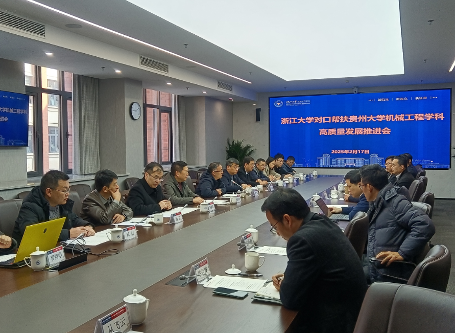 2025年2月17日早上9:00,貴州大學(xué)李飛副校長(zhǎng)帶隊(duì)赴浙江大學(xué)機(jī)械工程學(xué)院調(diào)研,推進(jìn)“組團(tuán)式”幫扶學(xué)科建設(shè)工作。期間召開“浙江大學(xué)對(duì)口幫扶貴州大學(xué)機(jī)械工程學(xué)科高質(zhì)量發(fā)展推進(jìn)會(huì)”。