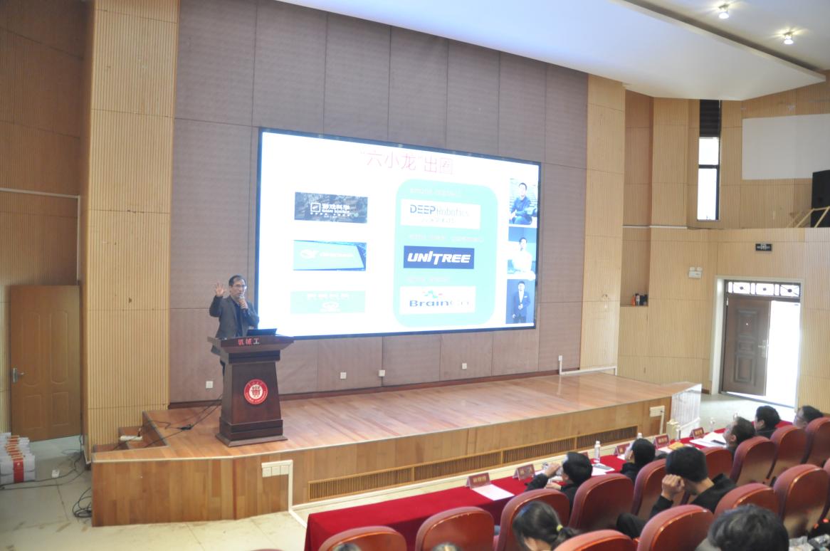 李家春以“杭州六小龍”火爆出圈的例子,一段機器人在復雜地形運動并做出高難度動作的視頻,引出機械專業(yè)在未來的發(fā)展前景,隨后以學院近兩年考研數(shù)據(jù)的對比,向同學們強調選修博學數(shù)學、英語的重要性,鼓勵動員同學積極備考升學,選修學校組織開展的博學英語、數(shù)學課。