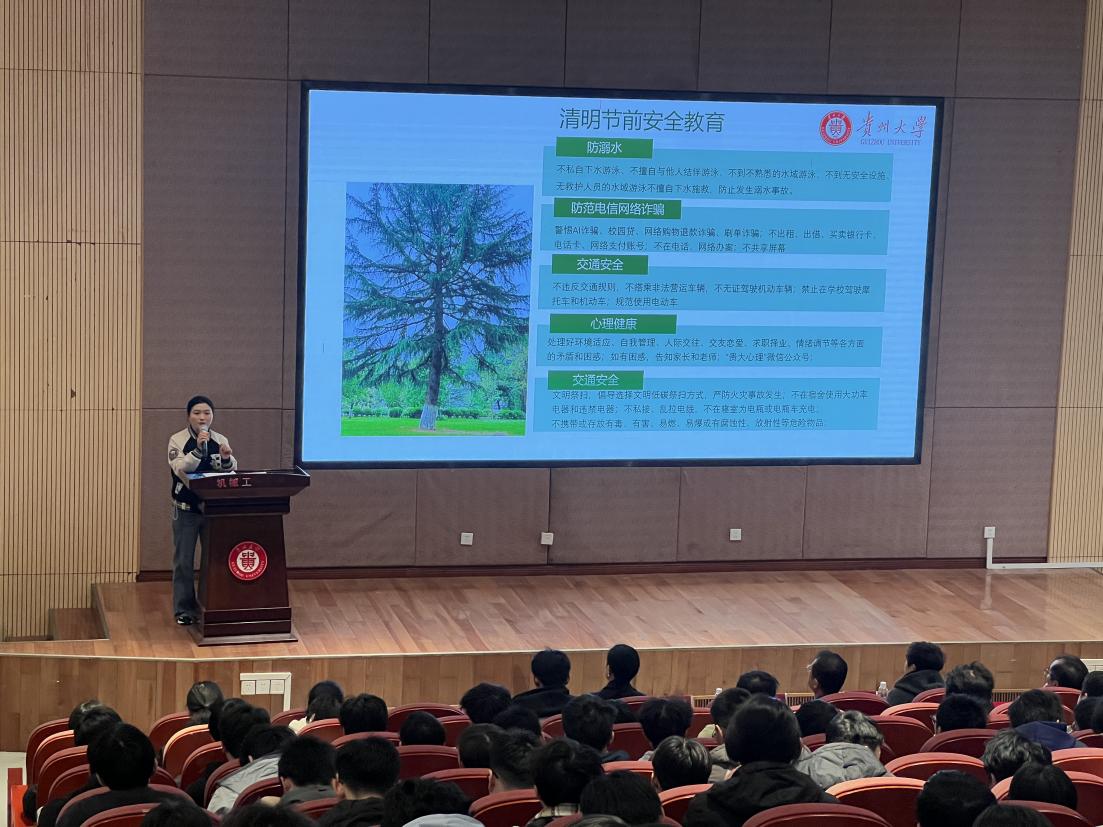 最后,年級輔導員趙麗芳作清明節(jié)前的安全教育,強調要注意防溺水、防范電信網(wǎng)絡詐騙,注意交通、心理以及消防等安全事項,幫助大家提升安全意識。