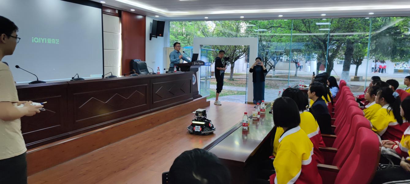 為充分發(fā)揮學(xué)者影響力,普及推動(dòng)科學(xué)知識(shí),我院副院長(zhǎng)唐正強(qiáng)教授于4月17日走進(jìn)貴州大學(xué)附屬中學(xué)為師生開展主題為“智能時(shí)代,智創(chuàng)未來”的科普講座。他通過生動(dòng)的視頻演示和PPT配合講解,深入淺出地介紹了人工智能、智能制造等前沿科技的發(fā)展趨勢(shì)及其對(duì)未來的影響和我院教師在智能技術(shù)領(lǐng)域的探索與實(shí)踐,并向同學(xué)們展示了我院學(xué)生制作的機(jī)器人,激發(fā)學(xué)生關(guān)注科技熱情。
