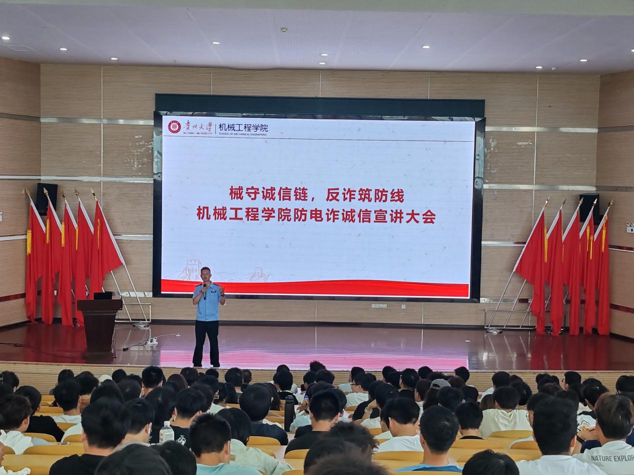 為提升機械學子的網(wǎng)絡安全意識,強化誠信觀念,營造安全穩(wěn)定的校園環(huán)境,2025年6月12日中午,機械工程學院邀請松山派出所副所長趙普林警官開展“械守誠信鏈,反詐筑防線”宣講大會,大會由學生科輔導員楊朵主持,學生科副科長王嘉斌及全體寢室長、健康委員、生活委員、安全委員參會。