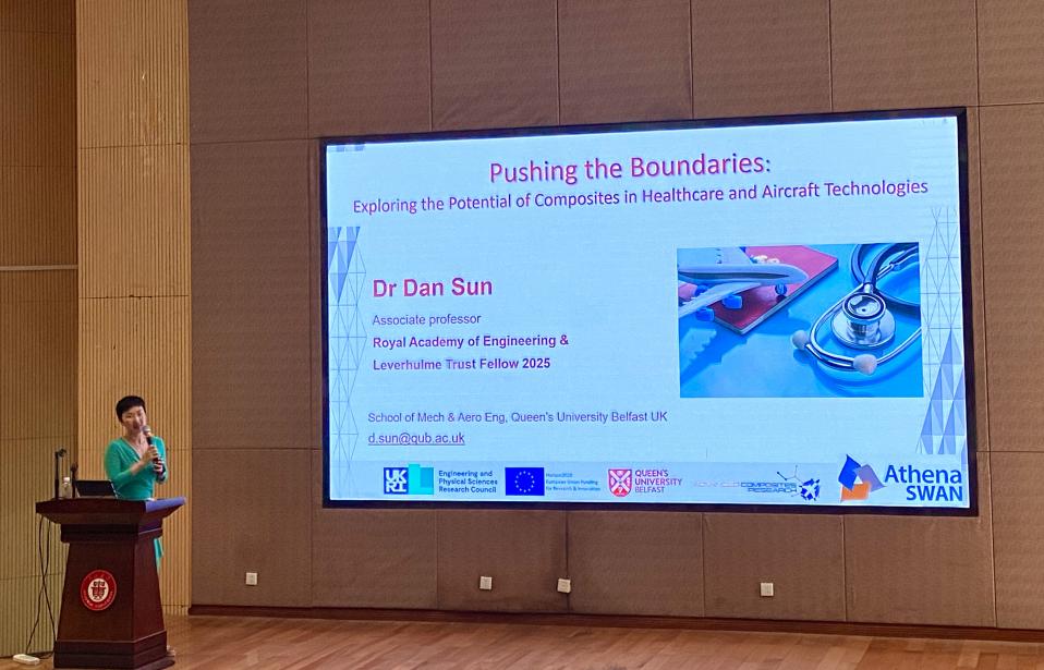 孫丹副教授聚焦先進復(fù)合材料的前沿應(yīng)用。在醫(yī)療方面,她開發(fā)的智能復(fù)合植入材料不僅能替代受損骨骼,更能實現(xiàn)精準藥物釋放和可控殺菌,為復(fù)雜骨病治療提供全新解決方案;在航空領(lǐng)域,其團隊針對新一代可回收飛機材料,創(chuàng)新性地優(yōu)化了加工工藝,顯著提升制造效率與環(huán)保性能。兩項研究均體現(xiàn)了復(fù)合材料技術(shù)對產(chǎn)業(yè)升級和人類健康的積極推動作用。