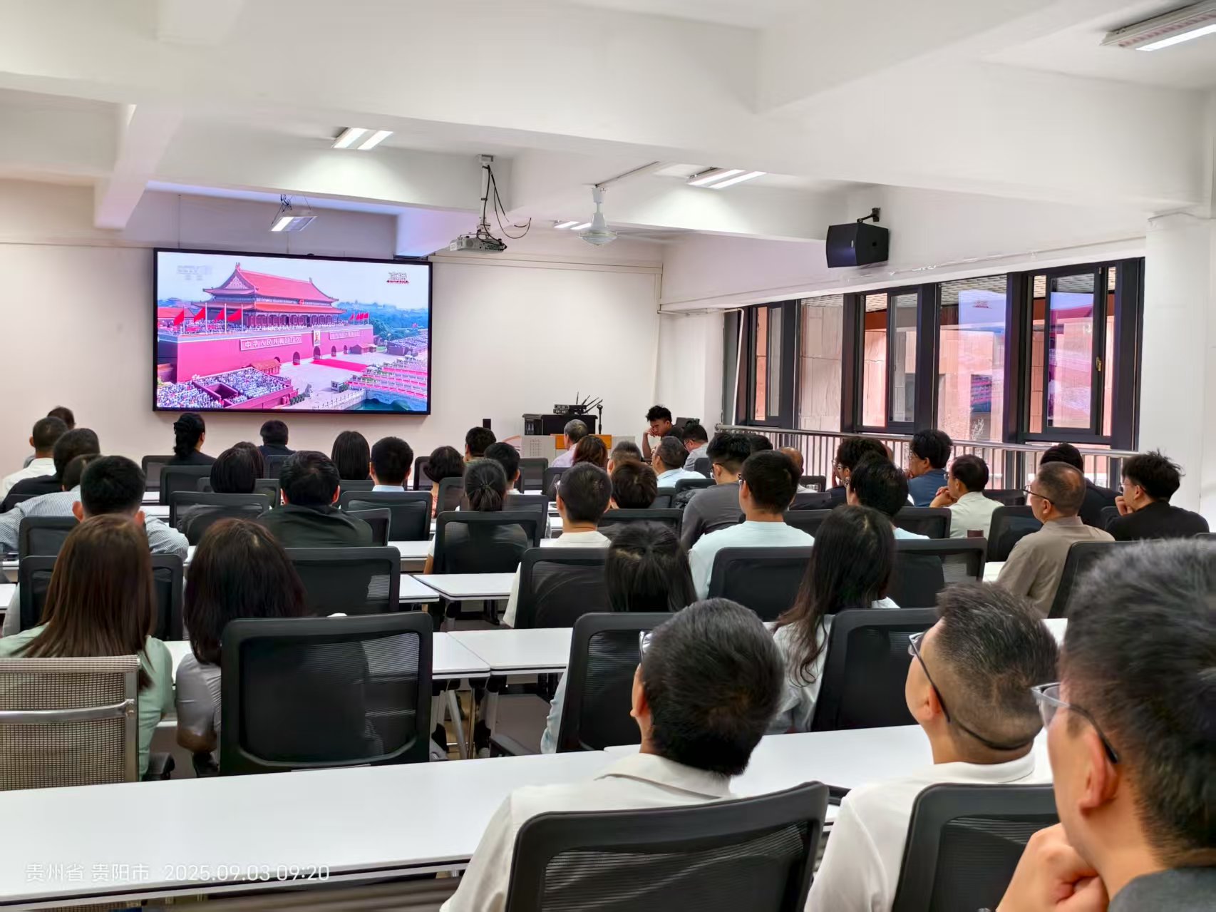 2025年9月3日上午9時(shí),機(jī)械工程學(xué)院組織全體師生觀看了紀(jì)念中國(guó)人民抗日戰(zhàn)爭(zhēng)暨世界反法西斯戰(zhàn)爭(zhēng)勝利80周年閱兵式的現(xiàn)場(chǎng)直播,全國(guó)模范教師、我學(xué)院教授張富貴老師受邀在紀(jì)念中國(guó)人民抗日戰(zhàn)爭(zhēng)暨世界反法西斯戰(zhàn)爭(zhēng)勝利80周年大會(huì)現(xiàn)場(chǎng)觀禮,學(xué)院領(lǐng)導(dǎo)班子、國(guó)家級(jí)領(lǐng)軍人才張正文教授等集中觀看了直播活動(dòng)。